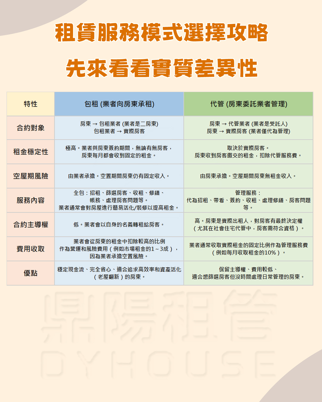 包租(二房東模式)與 代管(委託管理模式)對比介紹